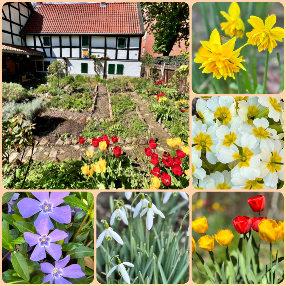 Der Hausgarten – angelegt wie ein Gärtchen von 1600 – präsentiert sich heute als Kräutergarten mit überwiegend heimischen Pflanzen. Er bietet viele Informationen und Anregungen zur praktischen Anwendung in Haus, Küche, Naturkosmetik, Gesundheitspflege.